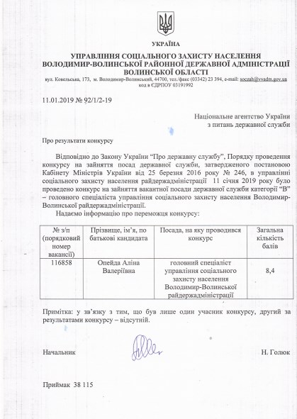 УМОВИ проведення конкурсу на зайняття вакантної посади державної служби категорії «В» - головного спеціаліста з питань кадрової роботи відділу організаційної роботи та управління персоналом апарату Володимир-Волинської районної державної адміністрації Волинської області